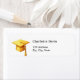 Ein Imitat Gold Graduierungsmütze. Personalisieren Sie Ihren Namen und Ihre Adresse und fügen Sie diese hinzu. Schwarze Buchstaben.