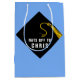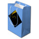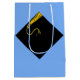 Abschluss Geschenktasche mit Gradcap-Design auf einem hellblauen Hintergrund. Text bearbeiten, um Namen hinzuzufügen.
