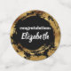 Klassischer und stylischer schwarzer Hintergrund mit goldenem Pinselstrich und goldenem Imitat. Moderne Stil Abschluss gratulieren conetti mit Monogramm mit Ihrem Lieblings-Absolventen-Namen. Ideal für ein Party zum Feiern von Abschlüssen. Die Farbe des schwarzen Hintergrunds kann auf die Farbe Ihrer Wahl geändert werden.