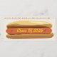 Eine Abschluss-Einladung mit einer Darstellung eines Hotdog mit Senf vorne. "Senf" ist eigentlich gelber, anpassbarer Text, der lautet "Klasse von 2012". Personalisieren Sie den Text auf der anderen Seite mit Details zu Ihrem Anlass.
