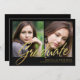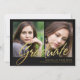 Elegant aber und einfache Absolventmitteilung mit 2 Fotos mit trendy handgeschriebener Skriptbeschriftung der Imitatgoldfolie und subtilem Schatten filtern. Optionales Abschluss-Party laden Rückseite des Textes an ein.
