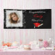 Schönes Banner für Ihren speziellen Absolvent. Hübsches Silber, funkelnder Glitzer mit Sternexplosionen. Rote Mütze und Diplom mit rotem Band. Personalisieren Sie mit Ihrem bevorzugten Foto und ändern Sie den Text. ALLE DESIGN-ELEMENTE KÖNNEN BEWEGT, ROTATIERT ODER ENTFERNT WERDEN, UM SIE ZU ANZUG. Die Hintergrundfarbe, die ich in schwarz habe, kann in jede beliebige Farbe geändert werden.