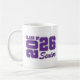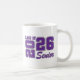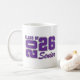 Die Abschluss-Keramiktasse für Senioren ist in einem lila-weißen Design gezeigt. Diesen Artikel anpassen oder wie abgebildet kaufen. Lizenzierter Druck