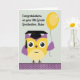 8. Klasse Abschluss Karte für Ihre Schwester, mit einer niedlichen illustrierten Eule, und einem großen gelben Ballon. Die Eule trägt eine Kappe. Dank der Hungryjpeg für einige Elemente in der Gestaltung.