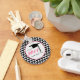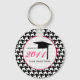 Ein Schlüsselanhänger mit einem Hintergrund-Design von schwarzem Hahnentrittmuster. Text "Class of 2011" mit schwarzer Graduierungsmütze in rosa Rahmen. Personalisieren Sie mit Ihrem Namen.