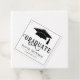 Modernes, stilvolles Geschenkschild mit dekorativem Abschluss mit dem Namen, der schließ und der Graduiertenkappe.