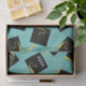 Kreative Klasse der '25 Abschluss Geschenk-und Party-Papier mit schwarz und goldene Grade Kappen auf aquamarin blauem Hintergrund.