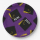 Creative grad Party Teller mit klassischen Schwarz-Gold-Graduiertenkappen auf lila Hintergrund. So personalisieren Sie Text bearbeiten, um seinen Namen und Senior Class Year hinzuzufügen.