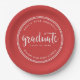 Abschluss mit rotem Skript und weißen Streifen Pappteller