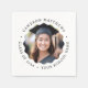Abschluss-Serviette mit Foto in einem gewellten Rahmen und dem eigenen Text rund um das Foto. Schwarzer Text auf weißem oder benutzerdefiniertem Hintergrund.