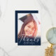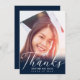 Abschluss Modern White Script Foto Blue Dankeskarte