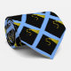 Abschluss Zeremonie und Party-Hals-Krawatte mit schwarzen und goldenen Oberteil-Muster auf hellblauem Hintergrund.