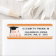 Moderne Abschluss-Rücksendeadressen-Aufkleber in Orange, Schwarz und Weiß mit Graduierungsmütze oder Mörtel und handgeschriebenen Pinseln und Ballonbriefen Typografie für das Jahrgang. HILFE: Für Hilfe bei Designänderungen oder Personalisierungen, Farbänderungen, der Übertragung des Designs auf ein anderes Produkt oder der Koordination von Gegenständen, wenden Sie sich bitte an den Designer, bevor Sie über den Zazzle Chat MESSAGE Tab bestellen oder per E-Mail an makeitaboutyoustore@gmail.com.