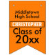 Glücklicher Abschluss in Orange und Schwarz. Geben Sie den Schulnamen, den Vornamen des Absolventen und die Klasse des Jahres ein, die in Schwarz und Weiß im Leerzeichen zwischen den Begriffen Glück und Abschluss angezeigt wird. Um die Textgröße für den Namen anzupassen, klicken Sie auf Ebene anpassen und auf Ebene (Flag Nummer 6), um die Skalierung mit Plus minus einzustellen, oder um den Zeilenabstand nach oben oder unten zu verschieben. Klicken Sie auf Anpassen, um die Schulfarben für jedes Flag aus der Farbpalette des Hintergrunds zu wählen, oder fügen Sie eine Hexencode-Nummer ein, und klicken Sie auf jede Ebene-Flag-Nummer, eine nach der anderen, um Hintergrund oder Textfarbe zu bearbeiten. Original Design © 2017 TamiraZDesign.