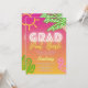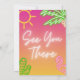 Lebendiges und lebhaftes Einladungsdesign, das tropische Elemente mit knalligen Neonfarben kombiniert.