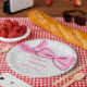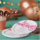 Abschluss-rosa Damast und Imitat-Bogen Pappteller