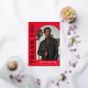 Stilvolle und trendige Abschluss Dankeschön-Karte mit dem Foto des Absolventen auf der Vorderseite mit einem Offsetbogen Foto Rahmen. "Danke" wird in der Retroschrift aus Goldfolie auf einem roten Hintergrund angezeigt. Personalisieren Sie die Vorderseite des Fotos Abschluss Dankeschön Karte durch Hinzufügen des Graduiertennamens, Schule und Abschluss Jahr. Die Karte kehrt zurück, um Ihre getippte oder handgeschriebene Nachricht anzuzeigen. Der Abschluss Dankeschön an die Rot- und Goldfolie eignet sich sowohl für Absolventen der Highschool als auch für Unis.