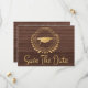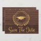 Herzlichen Glückwunsch an den Absolventen! Rustikaler Hintergrund aus Holz mit Imitaten goldener Gradkappe und elegantem Emblem. Moderner Abschluss Ankündigung Datum freihalten Karte. Moderner Text. Fügen Sie Ihre eigene Nachricht auf der Kartenrückseite hinzu, die Ihre Familie und Freunde detailliert informiert, um für eine Abschluss-Zeremonie, Veranstaltung, Party oder andere Veranstaltungen Save the Date zu können. Das Logo-Design umfasst Lorbeerkronen, Sterne und eine Graduierenkappe.