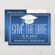 Abschluss Save the Date Chic Blue White Grad Cap Ankündigungspostkarte