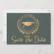 Ich entwerfe gerne Kunstwerke für Abschlüsse. Das ist eine moderne, einfache und elegante klassische Gold- und grüne Ankündigung Datum freihalten-Karte. Moderner Text. Fügen Sie Ihre eigene Nachricht auf der Kartenrückseite hinzu, die Ihre Familie und Freunde detailliert informiert, um für eine Abschluss-Zeremonie, Veranstaltung, Party oder andere Veranstaltungen Save the Date zu können.