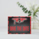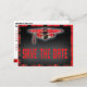 Moderner karierter Tartan-Abschluss in Rot und Schwarz Save the Date Postkarte. Einzigartige Save the Date Postkarte zum Verschicken an Familie und Freunde.