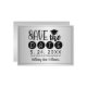 Mit dieser Save the Date eleganten Flachkarte kündigen Sie Ihren Abschluss an. Dieses Design-Template zeichnet sich durch ein modernes typografisches Design in schwarz auf Imitaten silber durch einen Graduierdeckel. Die Vorderseite der Postkarte lautet "Save the Date, um den Abschluss von" in einem modernen Skript mit dem Datum und Namen für Sie zu personalisieren. Auf der Rückseite der Anzeigenkarte befinden sich weitere Informationen zu Ihrem Abschluss, einschließlich einer Party Einladung, die Sie anpassen können. Glückwünsche auf deinem Abschluss! Designed by artist ©Susan Coffey.