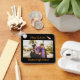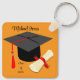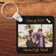 Abschluss Schlüsselanhänger mit personalisiertem Foto, Name und Jahr. Schwarz vorne und gelb hinten mit Kappe und Diplom. Klasse 2025!