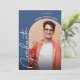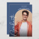 Fügen Sie Ihr Lieblings-Foto an die Vorderseite dieser blauen Abschlussfeier Einladungen mit dem Wort Absolvent in chic Schriften zusammen mit Ihrem Namen und Klasse Jahr. Ihre Party-Details sind auf der Rückseite. Weitere Designs und Farben in unserem Shop, einschließlich Graduierungsankündigungen, speichern Sie die Datumskarten und Postkarten.