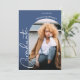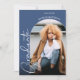 Fügen Sie Ihr Lieblings-Foto an die Vorderseite dieser blauen Abschlussfeier Einladungen mit dem Wort Absolvent in chic Schriften zusammen mit Ihrem Namen und Klasse Jahr. Ihre Party-Details sind auf der Rückseite. Weitere Designs und Farben in unserem Shop, einschließlich Graduierungsankündigungen, speichern Sie die Datumskarten und Postkarten.