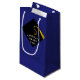 Abschluss Geschenktasche mit kreativem Schwarz-Gold-Cap-Design und Gratulationen auf blauem Hintergrund. Zum Anpassen editieren Sie Text, um den Namen Ihres bevorzugten Senior Class Grades hinzuzufügen.