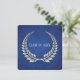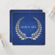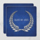 Silver Lorrel Symbol für Graduierungsparty auf blauem texturiertem Hintergrund. Text kann für jedes Schuljahr bearbeitet werden.