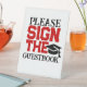 Red & Black on White Guestbook Abschluss Tischdekoration Sign Andere Party Schilder im Zazzle Shop erhältlich!