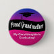 Stolzer Entwurf der grafischen Kunst des Großmutter-Abschluss-Knopfes umfaßt ein schwarzes Band mit der Wort stolzen Großmutter, eine schwarze Abschlusskappe und der Text, den meiner Enkelin abschloss! Hintergrund umfaßt eine lila und rosa Steigung.  Groß für Highschool, mittlere Schule, Juniorhoch, Uni, Universität, Berufsschule, juristische Fakultät, Krankenpflegeschule, medizinische Schule, Kriegsakademie und mehr. Großeltern, Eltern, Schwestern, Brüder, Onkel, Tanten und Absolvent zeigen Ihren Stolz!