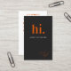 Mit dieser modernen und minimalistischen Visitenkarte, die für Absolventen, Studierende und angehende Fachkräfte konzipiert ist, die ins Berufsleben eintreten, machen Sie einen kühnen ersten Eindruck. Mit einem schwarzen Hintergrund, einem herzlich verbrannten "hi."-Statement in Orange und einem Namensschild eignet sich diese Karte hervorragend für Netzwerke, Jobinterviews, Karrieremessen und berufliche Events. 💼 Features: Aufmerksamkeit Eye-Catching Design - Der große "hi"-Gruß greift sofort und schafft einen freundlichen, zugänglichen Ton. Titel - Markieren Sie Ihren angestrebten Karriereweg oder Ihr Fachgebiet. berufliche dennoch Persönliche - Eine Unterschrift im Stil einer Unterschrift fügt eine stilvolle, personalisierte Touch hinzu. Versatile für jede Branche - Ideal für Marketing, Technologie, Finanzen, Gesundheitswesen, Bildung und Kreativwirtschaft. Premium Quality Print - Knusprige Typografie und kräftige Farben sorgen für ein schlankes High-End-Look. 🔗 Perfect for: Jüngste Absolventen und Arbeitsuchende Karrieremessen, Networking-Events und Konferenzen Praktika und Jobanwendungen Schüler, die ihre berufliche Marke 📌 Anpassbar bauen möchten - Bearbeiten Sie Ihren Namen, Ihre Jobbezeichnung und Ihren Schriftart-Stil, um es wirklich zu Ihrem eigenen zu machen! 🌟 hebt euch von der Menge ab und startet mit Zuversicht in eure Karriere. Bestelle noch heute! Fügen Sie diesem Design Ihre benutzerdefinierte Formulierung hinzu, indem Sie die Felder "Diese Designvorlage bearbeiten" auf der rechten Seite des Elements verwenden, oder klicken Sie auf die blaue Schaltfläche "Anpassen", um den Text zu ordnen, die Schriftart und Farben zu ändern und um diesem Design zusätzliche Informationen oder Bilder hinzuzufügen. Klicken Sie auf "Weitere Einstellungen vornehmen", um alle Bearbeitungsoptionen zu öffnen. Wenn Sie Koordinierungsaufgaben haben (danke Karten, etc.), kontaktieren Sie mich bitte für eine individuelle Bestellung. ****Für individuelle Anfragen, die Sie mit meiner Hilfe benötigen, stellen Sie diese Ware nicht in Ihren Warenkorb. Stattdessen schicken Sie mir Ihre Anfrage unter lauralise@iyhtvdesigns.com Ein Link zu Ihrer Ware wird Ihnen per E-Mail zugeschickt, sobald der Artikel verfügbar ist. Über diesen Link können Sie Ihre Bestellung aufgeben. Bitte warten Sie bis zu 48 Stunden.
