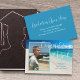 Ankündigung des Abschlusses mit Foto und Sondertext. Fügen Sie vorne ein vertikales Foto über ein tropisches Hintergrundbild des Strandes hinzu. Groß weißes Skript "Herzlichen Glückwunsch Name". Fügen Sie mehr Text für den Schulnamen und die Jahresklasse hinzu. Auf der Rückseite, passen für eine Feier mit weißem Text über Meer blauen Farbe. Ändern und löschen Sie den Text nach Bedarf.