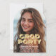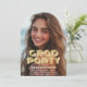 Ein trendiger Retro-Schriftart "grad Party" mit einem Foto, das die gesamte Front bedeckt. Die Rückseite der Einladung hat ein einfaches geometrisches Muster. Fügen Sie ein Jahr hinzu, um dieses elegante und trendige Design zu zeigen. Dieses kann für jeden Absolventen - Gymnasium, Uni, Graduiertenschule, Meditationsschule oder sogar Fachschule - genutzt werden.