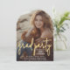 Ein trendiger Bounce Kalligraphie "grad Party" mit einem Foto, das die gesamte Front bedeckt. Die Rückseite der Einladung hat ein einfaches geometrisches Muster. Fügen Sie ein Jahr hinzu, um dieses elegante und trendige Design zu zeigen. Dieses kann für jeden Absolventen - Gymnasium, Uni, Graduiertenschule, Meditationsschule oder sogar Fachschule - genutzt werden.