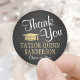 Fügen Sie eine elegante personalisierte Touch zu Uni oder High School Abschluss Dankeschön Karten und Gastgeschenke mit schwarz, weiß und gold rund Aufkleber / Umschlag Aufkleber. Der gesamte Text ist einfach anzupassen. Das Design besticht durch schwarze Imitate mit gebürstetem Hintergrund, Imitat-Folienhülle und moderne Schriftzeichen im Kalligrafiestil. Bitte beachten Sie, dass Gold farblich gedruckt ist, nicht metallische Folie. Herzlichen Glückwunsch an den Absolventen!