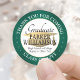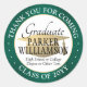 Fügen Sie eine elegante personalisierte Touch zu Uni oder High School Abschluss Dankeschön Karten und Gastgeschenke mit grünen, goldenen, weißen und schwarzen runden Aufkleber / Umschlag Aufkleber. Der gesamte Text ist einfach anzupassen. Das Design besticht durch eine gebürstete grüne Grenze, Imitate mit goldfarbenem Folienmörtel und moderne Kalligraphie-Typografie. Der Text enthält das Schuljahr, den Schulnamen und eine optionale Zeile für den Abschluss, die Auszeichnung oder das inspirierende Zitat. Bitte beachten Sie, dass Gold farblich gedruckt ist, nicht metallische Folie. Um als runde Rücksendeadressen-Aufkleber auf Einladungen oder Dankeschön-Notizen, ändern Sie den gebogenen Text in einen Namen und eine Adresse. Herzlichen Glückwunsch an den Absolventen!