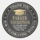 Fügen Sie eine elegante personalisierte Touch zu Uni oder High School Abschluss Dankeschön Karten und Gastgeschenke mit schwarz, weiß und gold rund Aufkleber / Umschlag Aufkleber. Der gesamte Text ist einfach anzupassen. Das Design besticht durch schwarze Imitat mit gebürstetem metallischem Hintergrund, Imitat-Folienmütze und moderne Typografie. Bitte beachten Sie, dass Gold farblich gedruckt ist, nicht metallische Folie. Der Text enthält das Schuljahr, den Schulnamen und eine optionale Zeile für den Abschluss, die Auszeichnung oder das inspirierende Zitat. Um als runde Rücksendeadressen-Aufkleber auf Einladungen oder Dankeschön-Notizen, ändern Sie den gebogenen Text in einen Namen und eine Adresse. Herzlichen Glückwunsch an den Absolventen!
