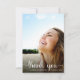 Ein moderner Abschluss Dankeschön-Karte mit dem Foto des Absolventen überlagert mit "danke" in einem stilvollen weißen Drehbuch mit Swashes und ihren Namen und Klassenjahr in schlicht weißer Typografie. Fügen Sie auf der Rückseite ein zusätzliches Foto hinzu, personalisieren Sie eine Dankeschön-Nachricht und fügen Sie ihren Namen in ein signaturähnliches Skript ein.
