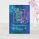 Feiern Sie die unglaubliche Errungenschaft, mit dieser wunderschön gestalteten Karte einen Abschluss zu machen. An der Vorderseite steht ein kühner "Glückwunsch, Graduate" sowie eine inspirierend Botschaft über den Rückweg, die kommenden Träume und die Liebe und Kraft, die sie umgeben. Die elegante, weiße Schrift ist gerahmt mit klassischen Abschluss-Symbolen - einer Kappe, einem Diplom und Sternen - Set vor einem lebendigen Aquarellhintergrund in Blau, lila und Grün. Ein perfekter Weg, um die Hingabe, Ausdauer und glänzende Zukunft des Absolventen zu würdigen.
