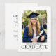 Eine klassische Abschlussanzeigekarte mit einem maßgeschneiderten Foto und traditioneller Typografie. Dieses elegante Design verfügt über ein formelles, minimalistisches Layout und einen zeitlosen Stil. Sie kann mit dem Bild des Absolventen, Namen, Titel der Qualifikation, Bildungseinrichtung und Abschlussjahr personalisiert werden. Druckfarben: schwarz und weiß, oder passen Sie die Farbe an Ihre Universität, Schule oder Hochschule an. Verfügbar als gedruckte Karte oder digitaler Download.
