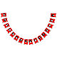 Graduation Party Glückwunsch Banner mit schwarz und goldfarbenem Graduierungshülse auf rotem Hintergrund.