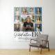 Feiern Sie den Weg Ihres Absolventen mit diesem Graduation Era Then & Now Grad Photo Collage Party Tapestry, einem modernen und personalisierten Dekorationsstück für die Abschlussfeier, das mit einer sauberen, inspiriert von einem Jahrbuch-Ästhetik designt wurde. Dieses minimalistische Layout zeigt eine 9-Foto-Then-und-Now-Collage, die Kindheits-Schulporträts neben einem aktuellen Abschlussfoto zeigt, um die unglaubliche Verwandlung im Laufe der Jahre hervorzuheben. Die stilvolle Überschrift "Graduation Era" kombiniert elegante handgeschriebene Schrift mit einer fetten, trendigen Serifenschrift für ERA und schafft eine zeitgenössische und dennoch zeitlose Aussage. Personalisieren Sie das Abschlussjahr, den Namen des Absolventen, die Schule und sogar zukünftige Pläne - ob College, Universität oder Berufsweg -, um es einzigartig bedeutungsvoll zu machen. Perfekt für High-School-Abschlussfeiern, College-Abschlussfeiern, Senior-Night-Displays und Abschlussfoto-Hintergründe dient dieses großformatige Tapestry als atemberaubender Mittelpunkt für Ihre Event-Dekoration. Ideal zum Aufhängen hinter Dessert-Tischen, Geschenktischen oder als unvergesslicher Fotobooth-Hintergrund verwandelt