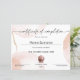 Modernes feminines Abschlusszeugnis mit abstrakten Aquarellformen. Perfekt für Ihre Lashes, Schminkkurse oder Friseure, Diplome, Prämien, Teilnahmezertifikate oder alle Schönheitsgeschäfte