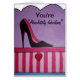 Trendy heißes hoher Heels des Rosa- und Schwarzstiletts, auf einem rosa und pinkfarbenen Schuhkasten. Sehr girly und eine absolut fabelhafte Grußkarte.