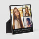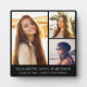 Eleganter Abschluss halten schwarze Foto-Plakette, um den Absolvent mit einer drei Bild-Collage und seinen Namen, Klassenjahr und Schule in der modernen weißen Typografie zu feiern.