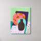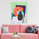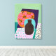 Leinwand im modernen Boho-Stil, abstrakt von Vase und Tisch in sanften Aqua-Tönen, Korallenorange, Schwarz und Weiß