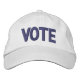 Vote, blauer Text weiß bestickt Baseball Cap. Erhältlich in vielen Farben